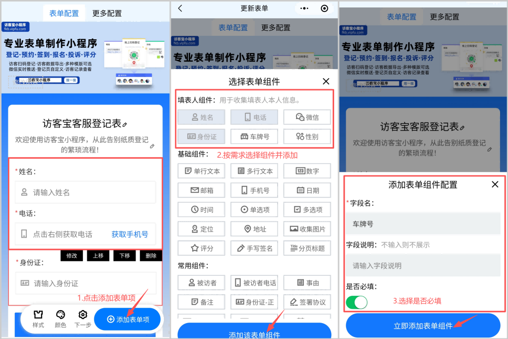 1、进入访客宝小程序的表单配置页面,点击添加表单项,
