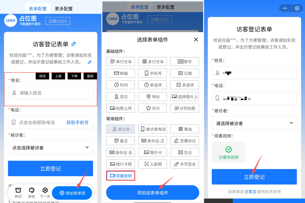 【新增】支持在访客登记/预约表单里添加观看视频组件