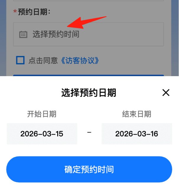 访客在预约的时候可以选择时间段:
