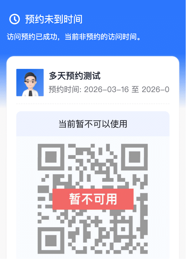 以前预约时间未到期和到期未过期的预约均展示二维码,目前未到期的二维码不支持展示和核销。